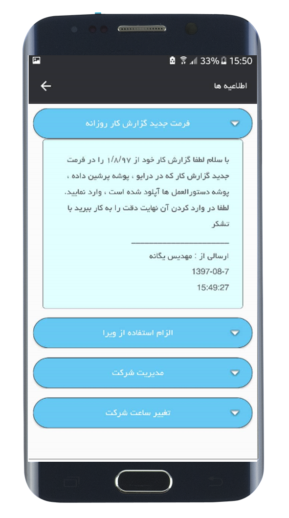این سامانه با امکاناتی نظیر امکان ثبت ورود و خروج کارکنان ، ثبت مرخصی ها ، ثبت ماموریت ها ، چت آنلاین کارکنان در سامانه ، ارسال گزارشات و مستندات، ارسال اطلاعیه ، گزارش گیری از عملکرد کارکنان ، محاسبه حقوق و دستمزد و سایر امکانات بستری را فراهم نموده است که به کمک آن می توان مدیریت جامعی از عملکرد کارکنان مجموعه و سیستم سازی مجموعه را انجام داد.